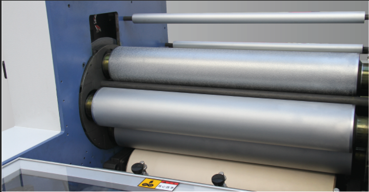 加熱輥筒+內(nèi)置導(dǎo)熱油加熱,溫度均勻穩(wěn)定,放膜采用帶刻度的氣脹軸、裝卸精準、方便。