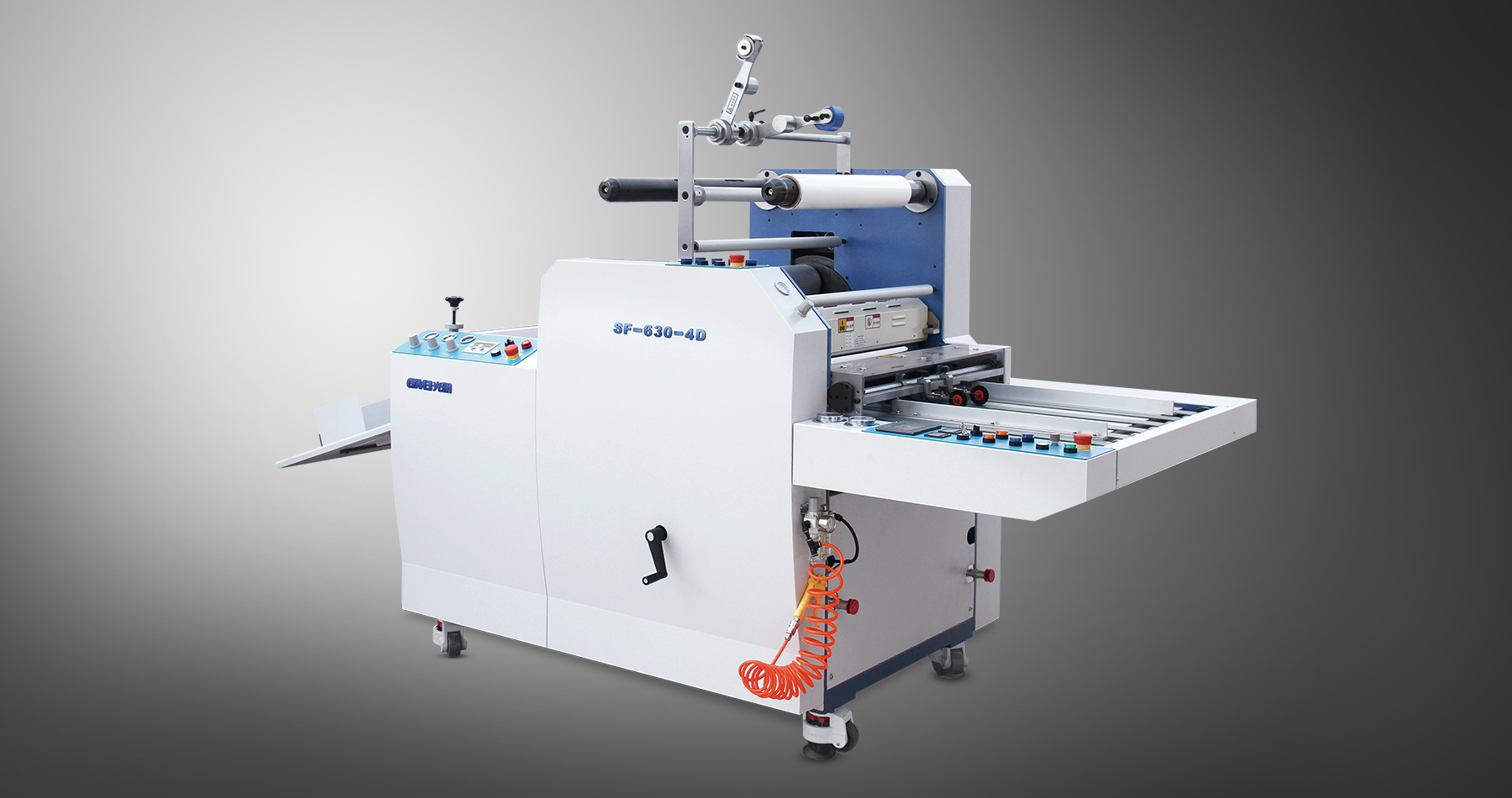 SFML-520B機型結(jié)構(gòu)緊湊,操作方便,電氣系統(tǒng)由可編程控制器集中控制,彩色觸摸屏,一人即可操作, 用戶只需輸入待加工的紙張尺寸,就能實現(xiàn)覆膜與分切兩道工藝。